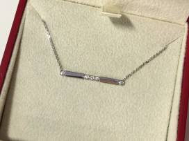 14 Karat white gold bezel bar necklace weighing 1.5DWT, set with 5 full cut round diamonds weighing 0.05 carat.