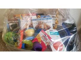 You can't miss out on this basket of fun for your best friend! Basket has an array of dog products, including dog food, grooming tools, pet throw blanket, SO many toys to keep your best friend entertained for hours!