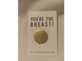 - A You're The Breast pin: brass with copper nip and a sterling silver pin