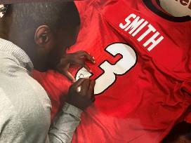 Jersey autographed by Pro Football linebacker Roquan Smith. This former Bulldog currently plays for the Chicago Bears and is the first UGA player to win the Butkus Award.