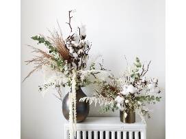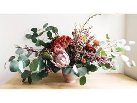 Large centerpiece of seasonal or dried florals by local floral design shop, Flower Clvb. www.flowerclvb.com