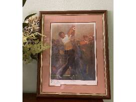 1World Golf Hall of Fame print of Arnold Palmer. Numbered 689/900. Signed by Arnold Palmer and artist Bernie Fuchs and framed.