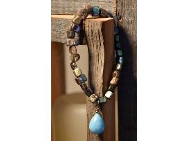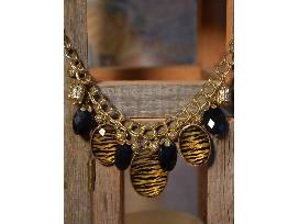 1Accentuate a variety of outfits with these beautiful pieces of jewelry, including a chunky bracelet, bracelet with a blue drop, a "D" emblem necklace with leather cord, a "D" necklace with mirror on other side, and tiger pattern necklace.