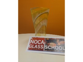 Made by an educator at NOCA Glass School, this beautiful vase will automatically brighten your space! NOCA Glass School offers classes in the art of glassblowing, flameworking, and fusing!