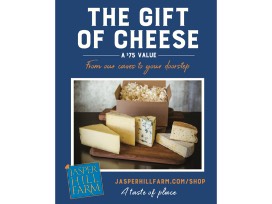 This gift box includes a variety of cave-aged artisan cheese, hand selected by the team at Jasper Hill Farm in Greensboro, Vermont. These single source cheeses support the verdant working landscape of Vermont.