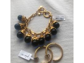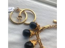 Spoil someone special with this Botticelli charm bracelet, by Julie Vos, including sapphire blue teardrops crowned with textured gold caps strung from rectangular gold links. This pairs beautifully with the included Delphi 24K gold plated hoop earrings.