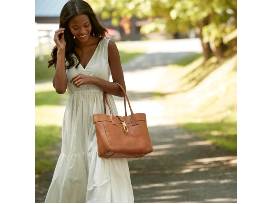 Crafted with Florentine Italian leather and finished with our signature lock, this structured logo tote marries timeless, European quality with classic American style. Top handles and gold hardware exude ladylike polish.