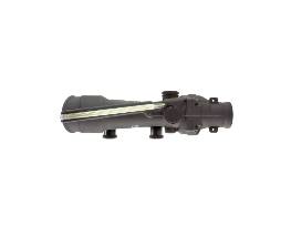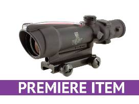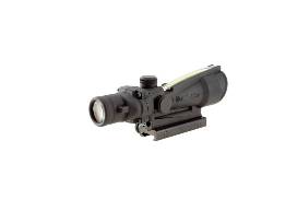 ACOG 3.5x35 scope with Amber Chevron BAC Reticle- The ranging reticle is calibrated for 5.56 (.223 cal) flat-top rifles to 800 meters. Includes Flat Top Adapter. The chevron reticle is designed to be zeroed using the tip at 100 meters. The width of the chevron at the base is 5.53 MOA which is at 19" at 300 meters. This allows range estimation for silhouette targets.