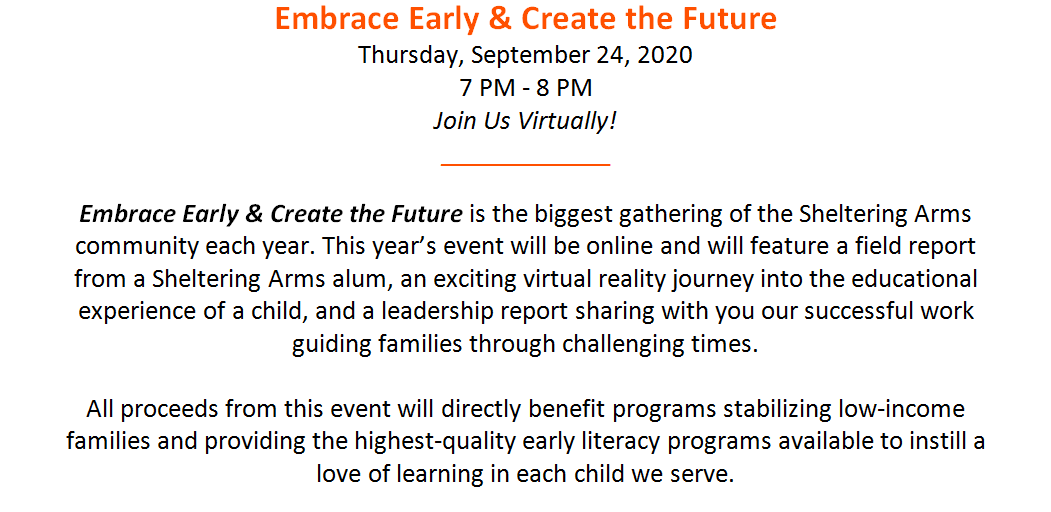 Sheltering Arms Early Education and Family CentersFor more information, please contact Christina Bacopoulos, Manager of Events and Volunteers.