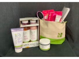 $50 Gift Certificate for the salon in Elyria with Matrix Biolage R.A.W. Recover Shampoo and Conditioner, Hair Styling Primer, Bodifying Styling Jelly, Deep Conditioner, Face Wipes, Brush and Detangler Comb.