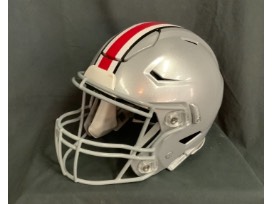 Based on their most popular on-field design, this collectible SpeedFlex Authentic football helmet is made by local manufacturer of college and NFL helmets, Riddell. Made specifically for fans of The Ohio State Buckeyes. Approximately 11" tall, this authentically-sized helmet is perfect for football fans and great for autographs. Features a large-size SpeedFlex shell and packing, face mask, 4-point chin strap with Cam-Loc attachment, Quick-Release facemask attachment system, and official paint and decals. It is not to be used for play. The perfect collectible!