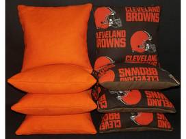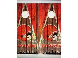 Handmade Browns cornhole boards by friend of Blessing House Jared Lucas. Includes four Browns and four orange cornhole bags. Show your CLE pride and enhance your backyard fun!