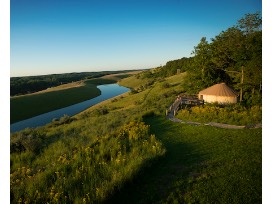 Enjoy an overnight stay glamping at The Wilds inside the Columbus Zoo! Experience the cozy comfort of a well-appointed private yurt with unique accent features like bamboo flooring and Asian-inspired decor. Sit back on your own personal deck tucked amid trees next to animal pasture areas. Take in the beautiful, sweeping views of The Wilds from the observation deck where you may use your binoculars to look for animals large and small from rhinos to red-tailed hawks! Relax around the fire ring in the evening, miles and miles from traffic and urban lights, and look up at the grand open skies. Savor dinner and breakfast in settings with magnificent views.