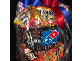 Your next game night is ready to go, snacks and all! Board games, card games, popcorn, pizza gift card and candy galore.