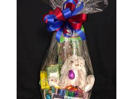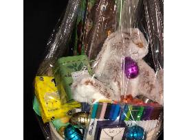 0Hop on this basket and you will be all ready for Easter. Includes a huge chocolate Easter bunny, peeps, stuffed bunny, necklace and much more.
