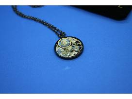 Black pendant clockwork-inspired one-of-a-kind necklace handmade with care by The Iron Angel. Perfect for you steampunk cosplay or a night out!