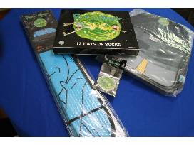 Package one: Take your fandom on the move! This Rick & Morty Extravaganza includes a Rick and Morty backpack, sun shade for your car, air freshener and a pack with 12 days of Rick and Morty socks. Share with your friends! Or never wear other socks again -- we can't tell you what to do!