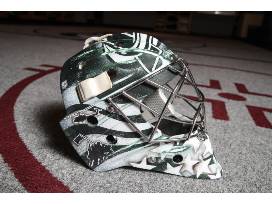 Philipp Grubauer Autographed Military Goalie Mask. Custom one-of-a-kind design.