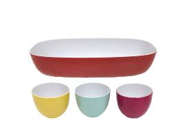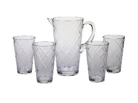 Host the perfect patio party with this floral serving platter, 4-piece serving bowl set, acrylic pitcher, and (4) acrylic tumbler glasses.
