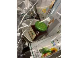 Stock your breakfast supplies with (4) cereal bowls, a 4-piece ramekin set, Starbucks French Roast, a happy spring mug, fig raspberry spread, cooking oil, a dish towel, and a stainless steel colander.