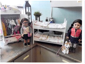 Hours of fun with these 2 adorable "Our Generation" dolls, Adria & Leslie. Comes with a table, 2 chairs, bunk beds, closet with 13 outfits, LOTS of accessories, cookie making kit, and a puppy.