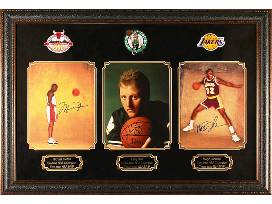 Autographed by Michael Jordan, Larry Bird and Magic Johnson