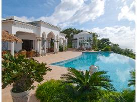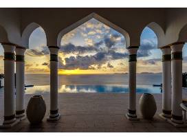 Toucan Hill sparkles as one of the most spacious residences on Mustique, with trade wind breezes and stunning architecture. Enjoy spectacular 360° panoramic views of the Caribbean and the Atlantic from this incredible Moroccan villa on a 7-acre hilltop. Mosaic tiled fountains, domed octagon dining pavilion, 2 infinity pools, colonnades and jeweled lanterns all add to the fantasy theme of this stunning palace. Four luxurious air-conditioned guest suites with private baths (Toucan, Sultan, Pasha and Palm Suites) feature private terraces and balconies, spacious dressing rooms and tiled bathrooms. Toucan Hill provides guests with every comfort and pleasure.