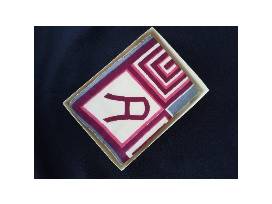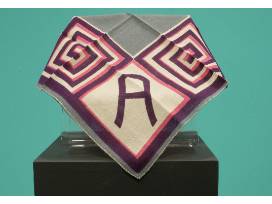 This handkerchief was owned by Ayn Rand and comes with a letter of provenance signed by Leonard Peikoff. Its unusual geometric design, rendered in shades of dark gray and pink, draws attention to its large initial A. Enclosed in a 5.5-inch x 7.5-inch artifact box made of acid-free buffered boxboard and clear polyester (with metal corner construction for strength and stability).