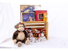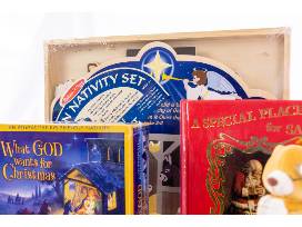 Any Child will enjoy the Wood nativity set, 2books, and Christmas Beanie Babies.