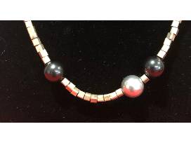 A beautiful matching necklace and earring set, from Laurie & Lisa Designs,. 12 mm silver square bead necklace with silver & black pearls. Matching 12 mm black pearl earrings.