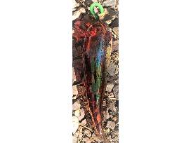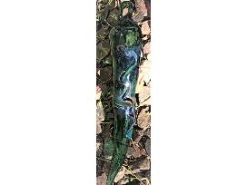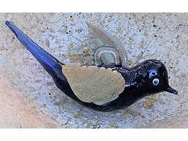 Three hand blown glass ornaments, including red & green chili peppers and a hummingbird by Nesci Glass