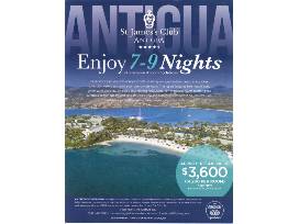 7-9 Nights at St. James Club in Antigua. This is for the room only, winner will be responsible to pay a night all inclusive rate.
