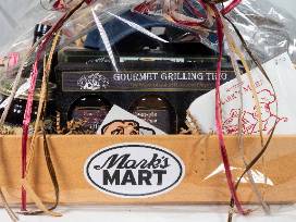 Wonderful basket filled some of Mark's Mart's most popular items including: $20 gift card, cheese straws, Alabama Mud Coffee, Hoover Sauce, Stone Ground Grits, Crop Pop Popcorn, Perfect Pickle Pack, Diablo Verde Sauce, and Mark's Mart Trucker Hat.