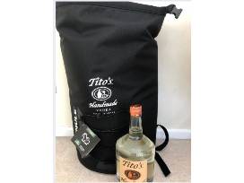 Enjoy the unsurpassed quality of Tito's Handmade Vodka! This basket/bundle includes: 1.75 Liter of Tito's Vodka and swag! A sweater, sweatshirt, Ice Mule Cooler, and 2 bowling pins.