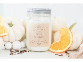 - (1) 12 oz. Spiced Pomander candle: Delicious aromas of spiced oranges and cloves make you think of Fall weather, warm sweaters and boots.
