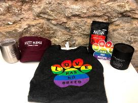 - "Love Has No Breed" t-shirt & sticker