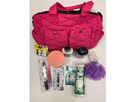 This beautiful quilted hot pink bag is filled with wonderful items to make you feel special and take care of yourself-including: