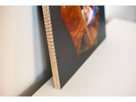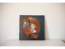 A photograph of the commissioned glove printed and laminated on a wood plank, for display. It comes with a certificate of authenticity from the artist.