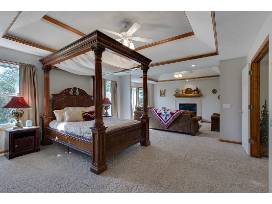 A very large living space allows for you to relax in the jetted tub, take in the evening by the fireplace, or cozy up to a movie on the 52"" flat screen TV. With large windows, this room overlooks the 15 acre property and its beautiful ponds.