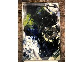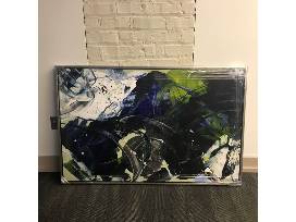 "Paleontologist" Artwork is a 36" x 60" acrylic painting, framed in a beautiful black and metallic champagne float frame by artist Tara Kesner
