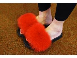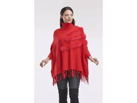 Red Knit Wool Poncho with Rabbit Trim and Red Fox Slides