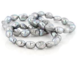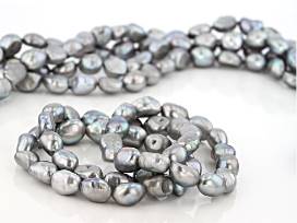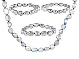 7.5-8.5mm Gray Cultured Freshwater Pearl Endless 64 inch Strand Necklace with 3 Stretch Bracelet Set