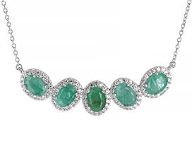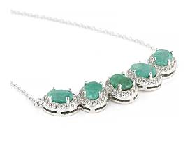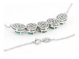 - 3.00ctw Oval Emerald with 0.95ctw Round White Zircon Sterling Silver Necklace - Size 18