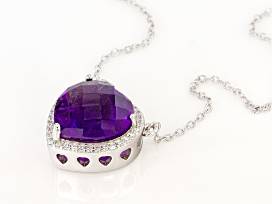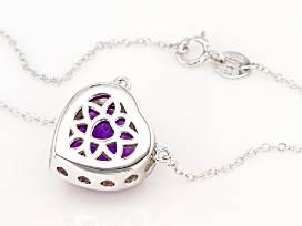 - 4.50ctw Amethyst with .25ctw Cubic Zirconia Sterling Silver Heart Necklace - Size 18