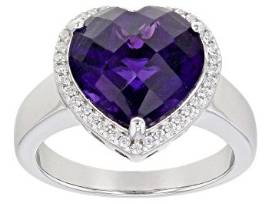 - 4.50ctw Amethyst with 0.25ctw Cubic Zirconia Sterling Silver Heart Ring