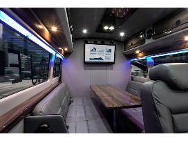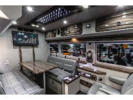 - LandJet mobile offices includes a center conference table, desk, refrigerator, leather soft-touch seats with armrests, (2) 32" TV's, and 8 USBS