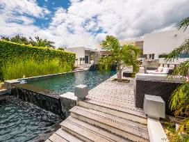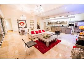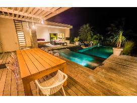 Villa Corazón is one of the largest properties in Villas Agua Dulce. It boasts 5 bedrooms with ensuite bathrooms, a large living room with integrated kitchen, large windows overlooking the pool, a garage and parking for up to three vehicles. It has a remarkable pool built on three levels with waterfall and jets, surrounded by an exotic wooden deck. There is a second living space including a kitchenette, private deck and an outdoor jacuzzi on the lower level.