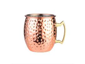 • Solid Round Pair of 100% Copper Moscow Mule Mug Cups, 20 oz., Hammered & Handcrafted, 5" L x 3.5" W x 4" H