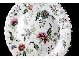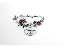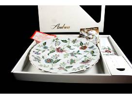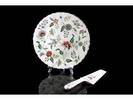 This beautiful Andrea Sadek plate with matching cake and pie server is beautifully hand-crafted in bisque porcelain. Its Buckingham pattern design includes vibrantly colored wild flowers with scallops, gold trim and light embossing. Dainty and elegant, this set is perfect for serving dessert at a brunch, dinner party or any special occasion.