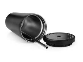 Enjoy your favorite cold or hot beverage in the Black Stainless Steel Tumbler with Straw by ArtMinds. You can pop this tumbler into your ladybug tote bag and carry it with you all day. Details: